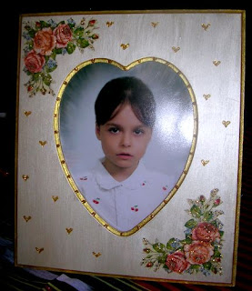 Çerçevede peçete dekopajı ve süslemede yaldız boncuk boya kullandım. Çerçeve boş olmasın diye tatlı kızım, Dilaramın resmini koydum. Bana öyle geliyor, bilmiyorum ama, sizcede bu resimde kızım Hülya koçyiğitin gençlik yıllarına benzemiyormu? Dedim ya belkide ben abartıyorum, yorum size kalmış:))