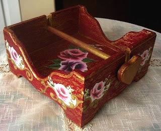 Peçeteliği sipariş eden bordo renk olmasını istedi,bende objenin alt katını yaldız renge boyayıp üzerini mumladım en son bordoya boyayıp telli süngerle kazıdım,deseni uygulayıp vernikledim.