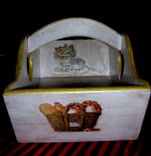 Dekupaj deseni ve eskitme tekniği kullandığım ekmek sepeti.