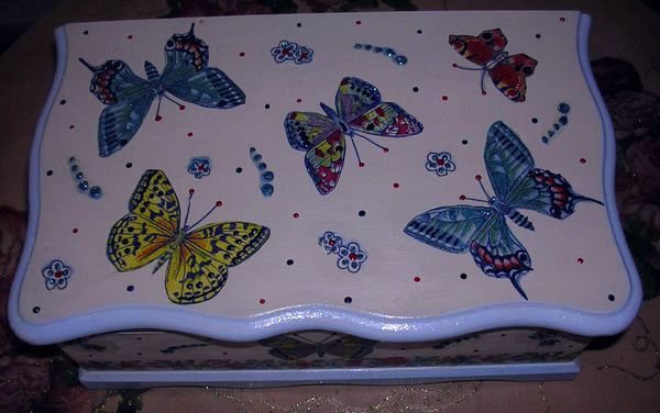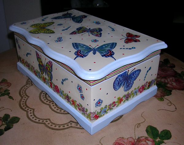 13-14 yaşlarında genç bir kızımız için çalıştığım takı kutusu. Peçete dekupajı uygulayıp boyutlu boyalarla küçük puantiyeler yapıp hareketlendirdim. Şık bir kutu oldu siz ne dersiniz?