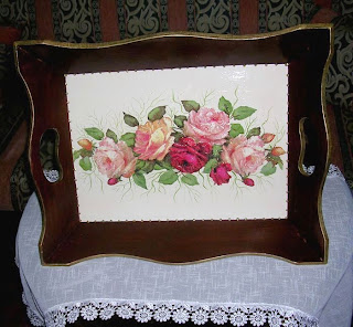 Bu çok zarif. Peçete deseni de harika ellerinize sağlık. antıquing eskitmeyi hiç denemedim. ama bu tepsiyi görünce bi deneyeyim :)