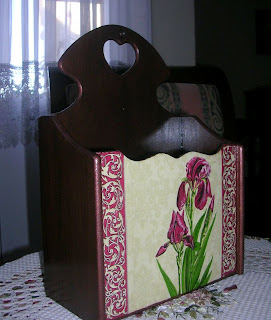 Zeminde antıquıng eskitme tekniği , posta kutusunun ön kısmında peçete dekupajı tekniği kullanılmıştır.