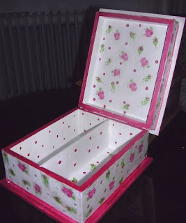 Kutunun üst tarafında dekopaj yan ve iç kısımlarda peçete kullandım boyutlu boyalarla süsledim resimde kırmızı gibi görünüyor ama asıl rengi çok tatlı bir şeker pembe. (decoupage wooden box and paper napkın used for jigsaw )